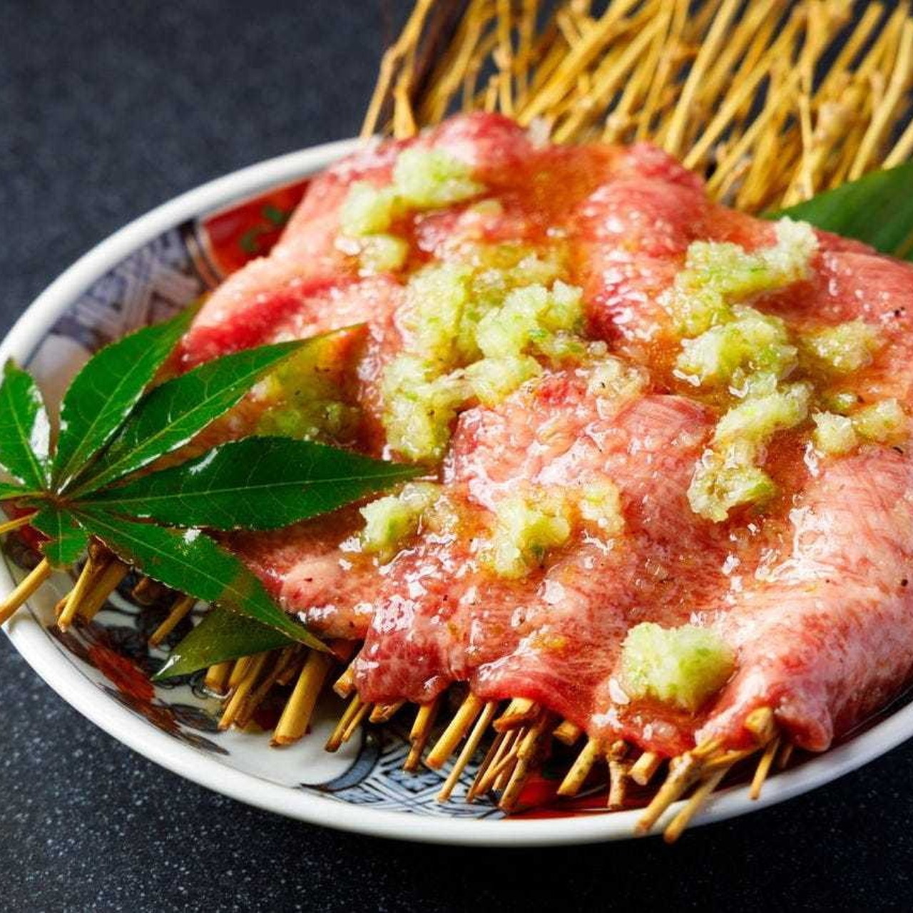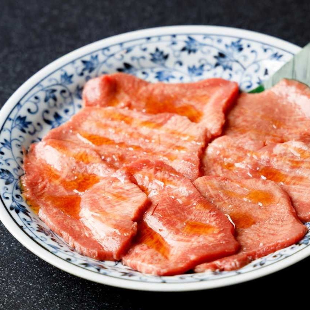 특상급 랭크의 소의 우설이라고 불리는 혀 부분을 사용한 고기 요리.