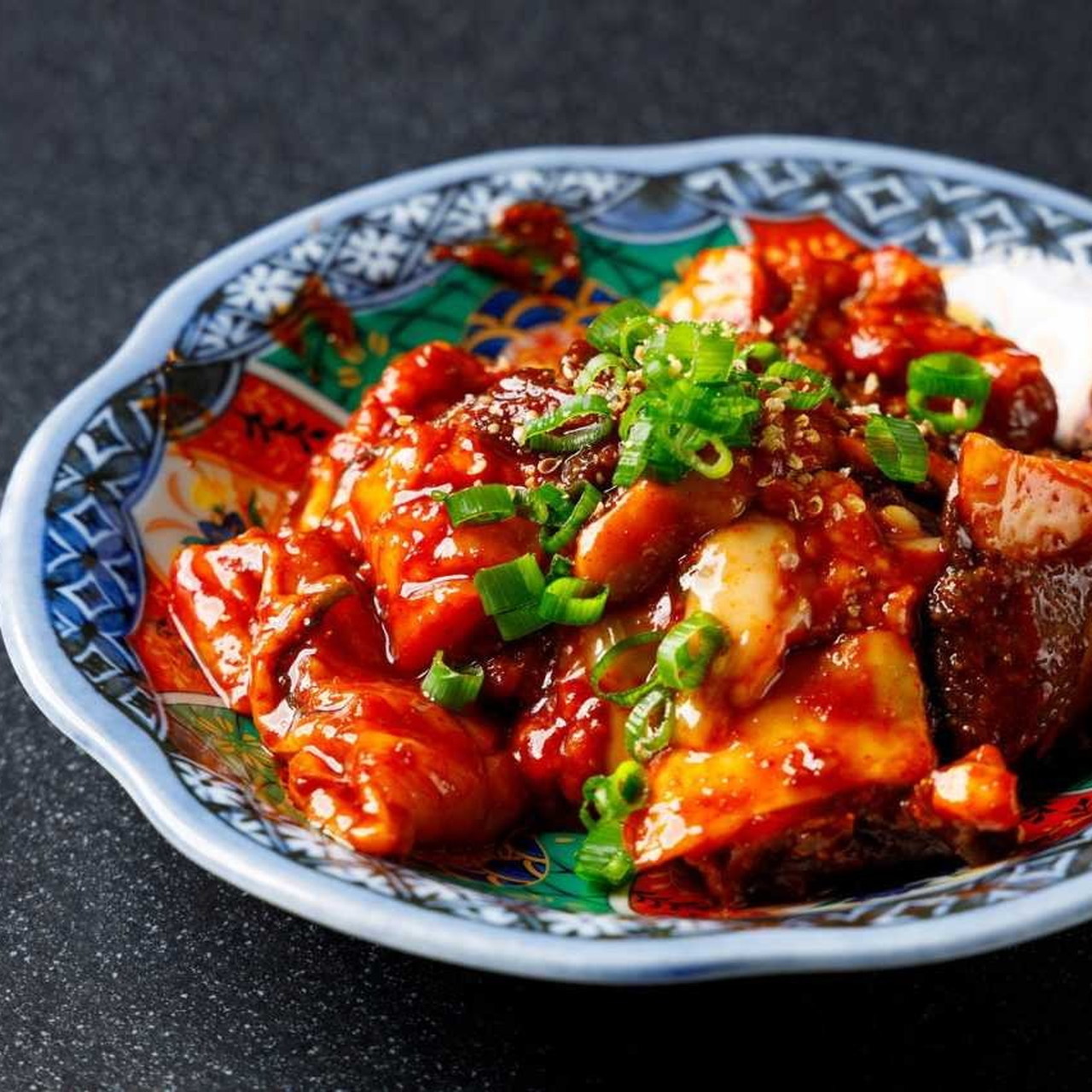 대창이라고 불리는 소 대장 부분을 사용한 고기요리.