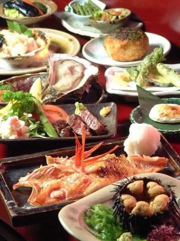 キンキとA5ランク仙台牛ヒレ串の炭火焼コース
