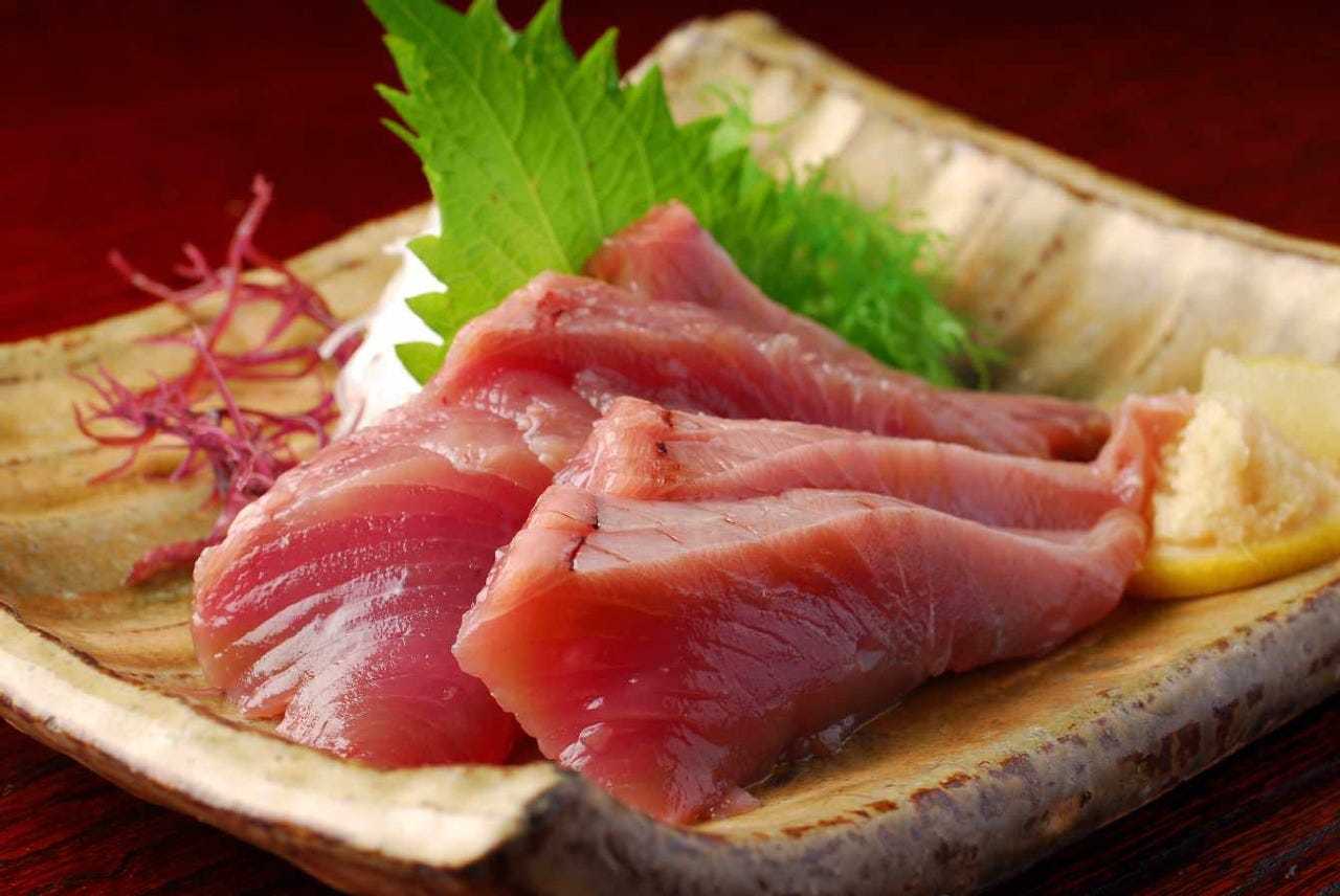 참다랑어 횟살을 얇게 썰어 간장 등에 찍어 먹는 요리.