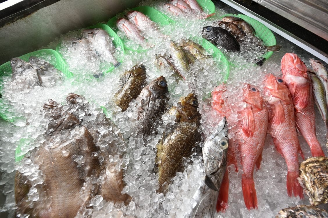 가게 안에 들어가면 마치 생선 가게. 그날 막 끌어올린 갓 잡은 선어를 호쾌하게 즐기실 수 있는 이자카야.