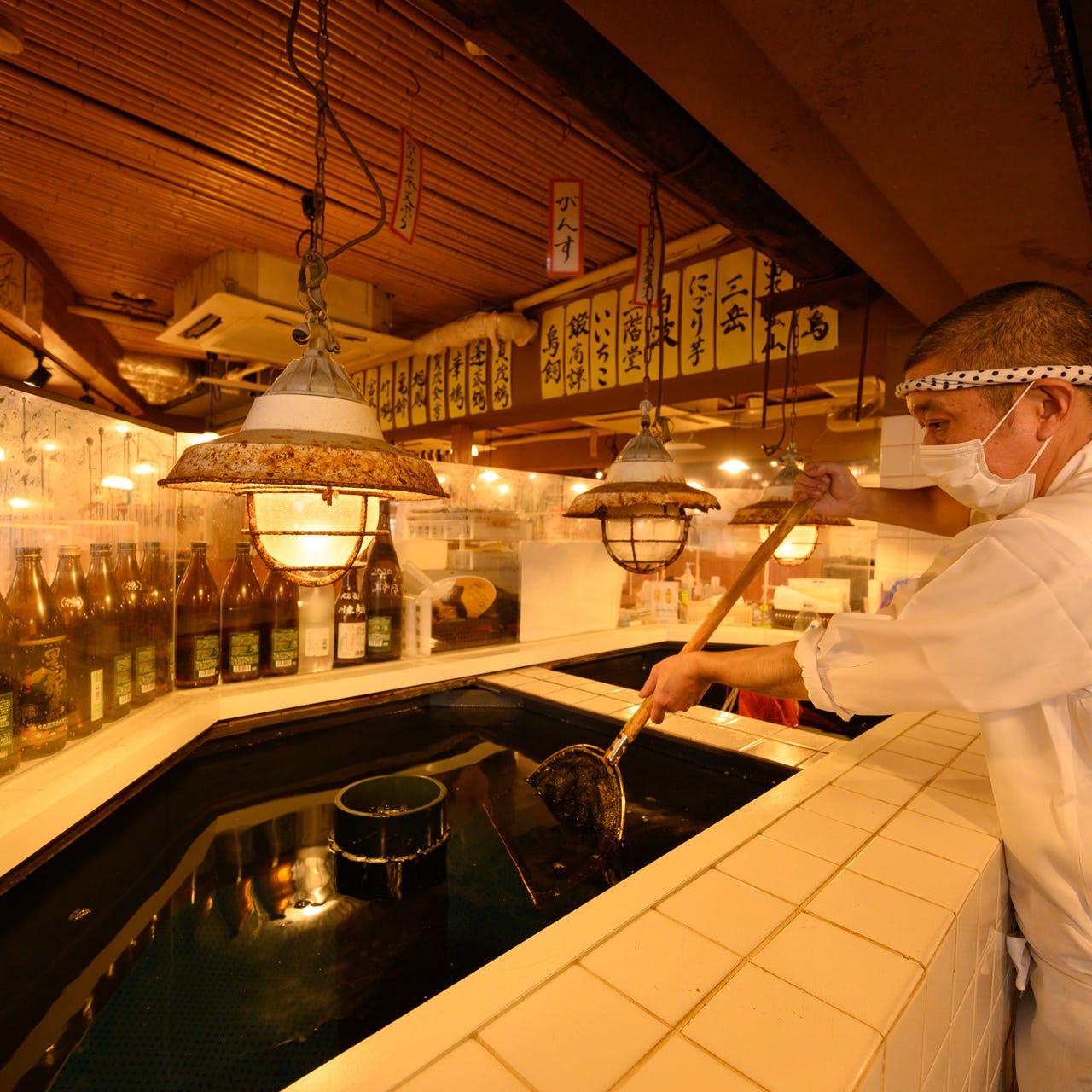 활기찬 점내는 맛있는 생선과 맛있는 술을 즐길 수 있습니다. 활어조에는 활어가 헤엄치고, 조리사가 재빨리 건져서 호쾌한 활어요리를 제공.