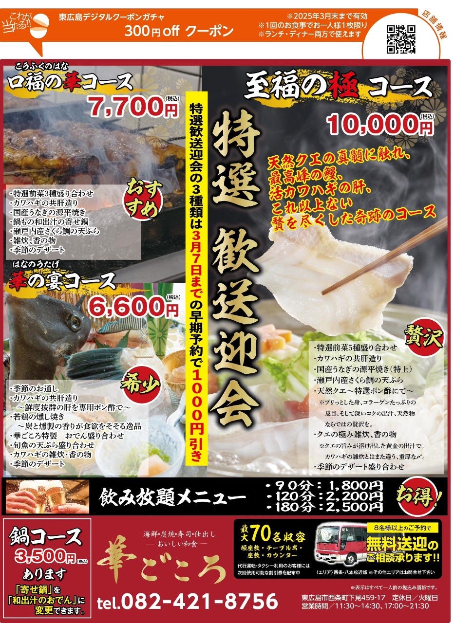 사계절 그때그때 제철 식재료를 일본 전국에서 직송하여 감칠맛을 살린 일품요리를 맛보실 수 있습니다. 또 음료는 지역 사이조의 지역 술을 시작으로 소주, 와인 등 점주가 엄선한 술을 준비하고 있습니다.