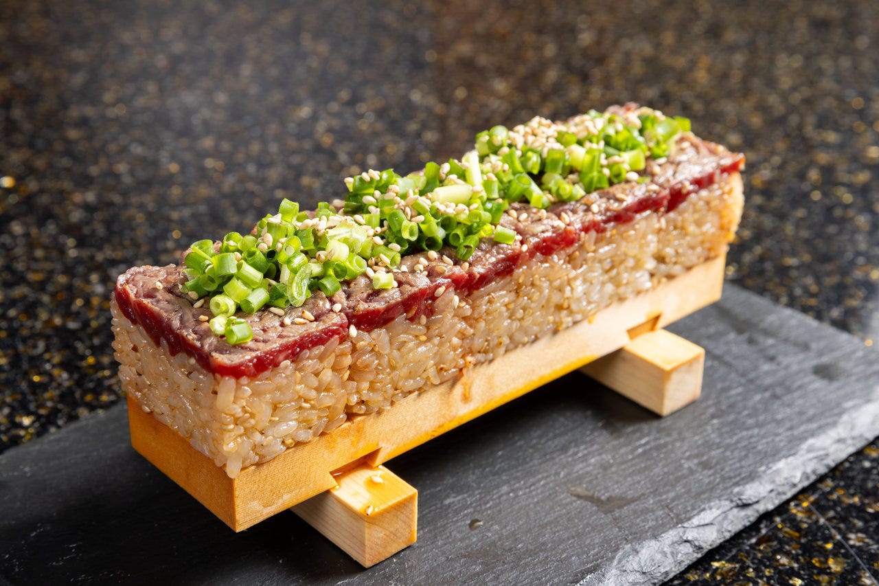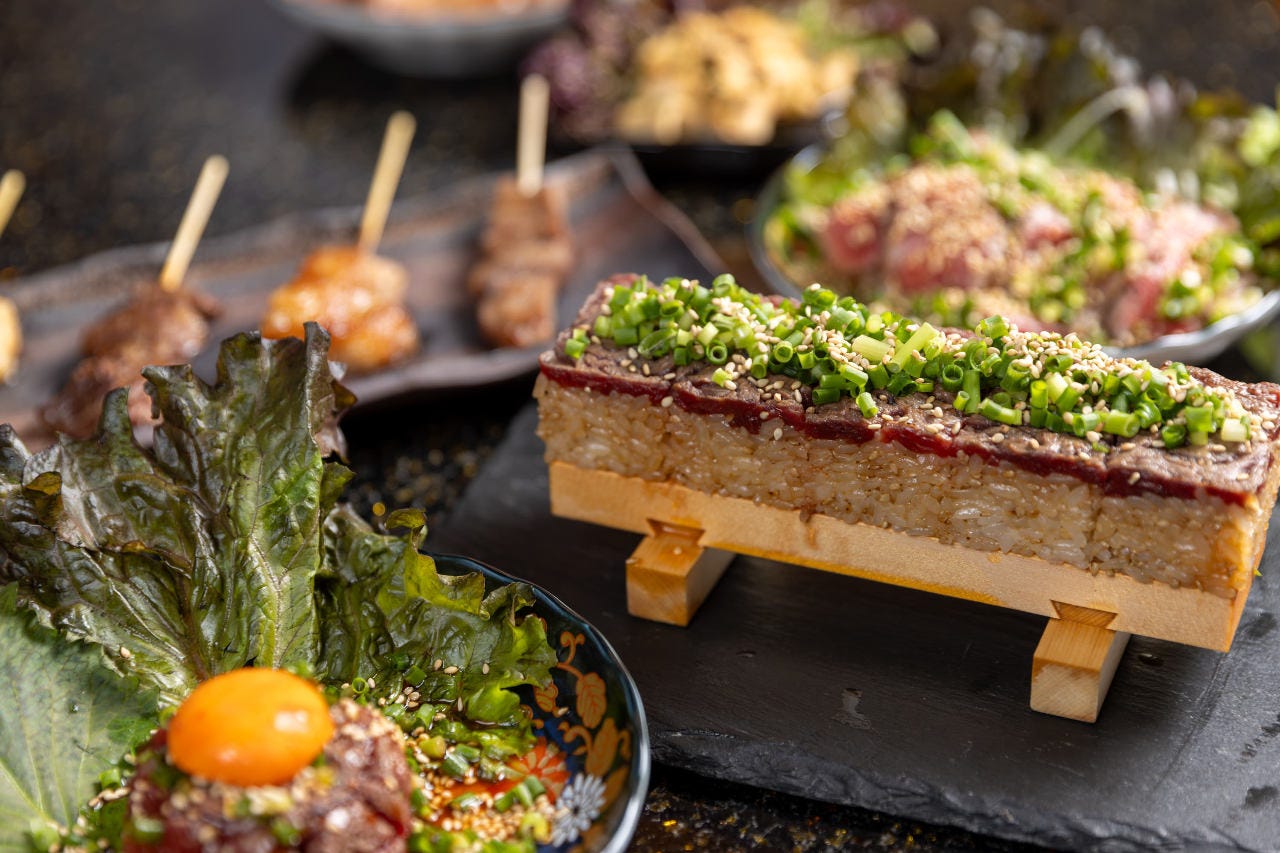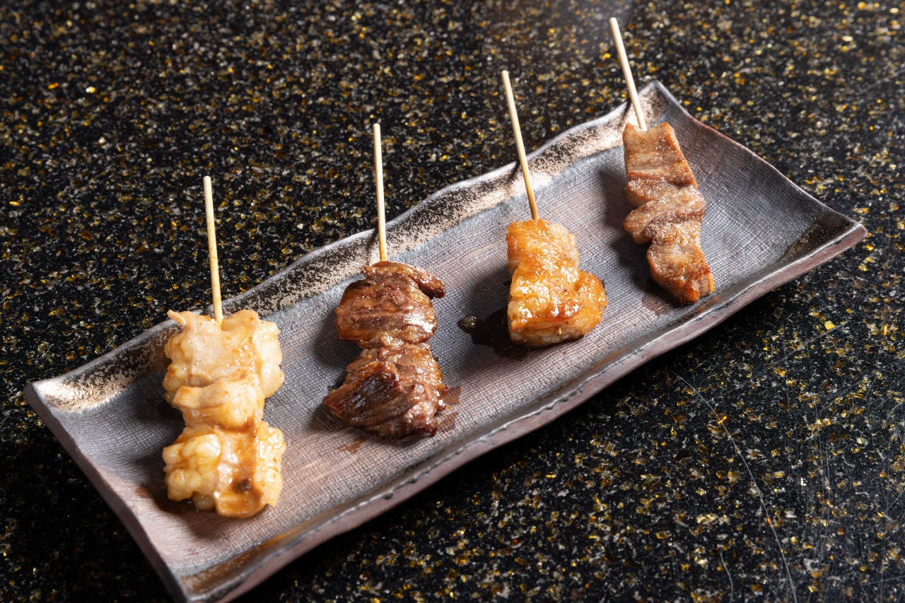 오카야마 시내에 새롭게 개점. 엄선한 쇠고기를 비전 소스로 얽힌 소꼬치로 맛본다. 신선한이기 때문에 그 "와규 유케" "볶은 와규 유케 스시"는 일품! 혼자 님으로부터 최대 22분까지의 연회도 받습니다!