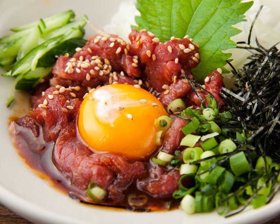 在米饭中放入东坡肉片和鸡蛋等材料,一起炒制的料理。
