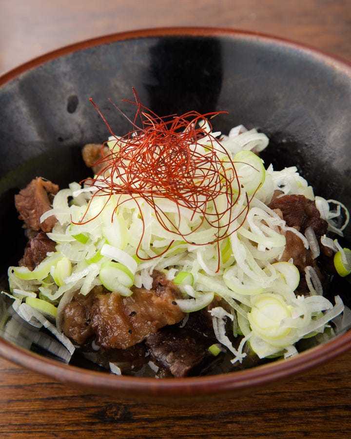 在切成丝的山药上撒上海苔等调味料,再用酱油或是柑橘醋调味而成的料理。