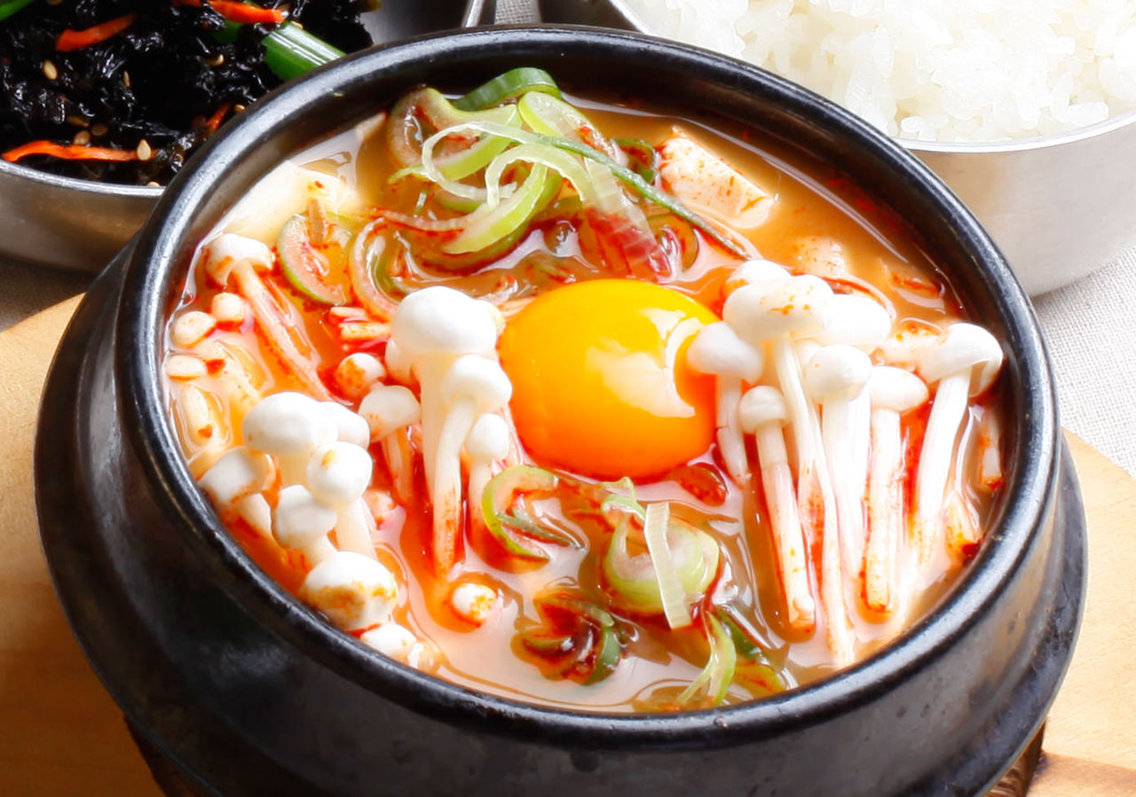 猪肉, 蛤子, 葱, 大蒜, 泡菜, 豆腐