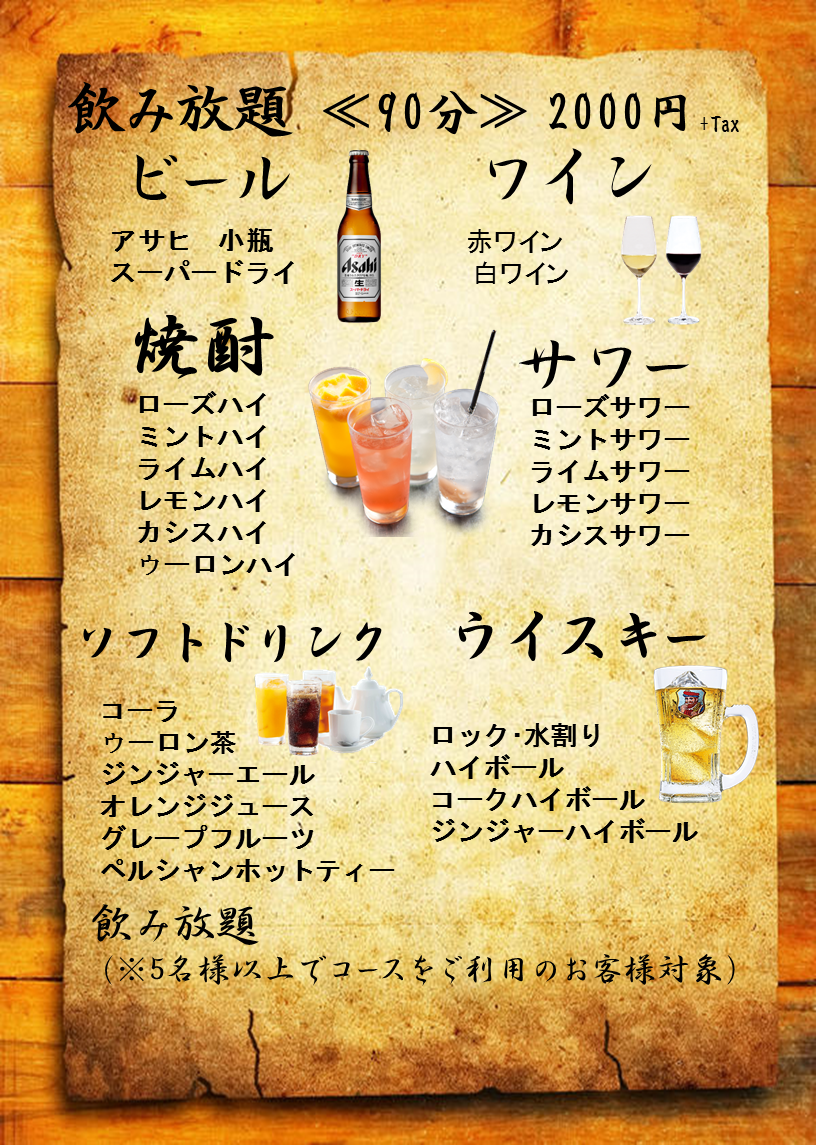飲み放題90 minutes Open bar