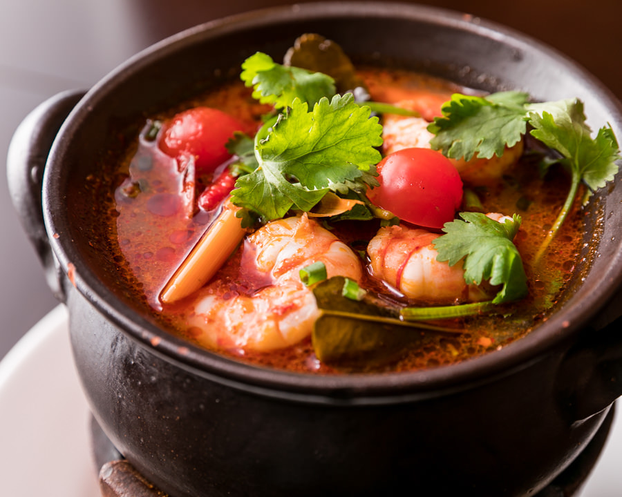 鲜虾配上其他食材放入加了印度特有香辛料的鸡汤里一起煮制而成的拉面。