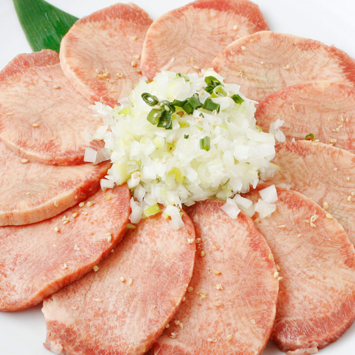 使用被称作舌的舌的部分用盐入味放上葱花的肉类料理。 |