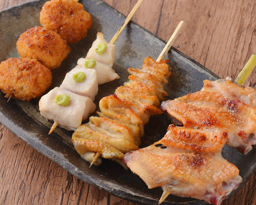 指将腌制过的鸡尾肉串在一起后用火烧烤的料理。