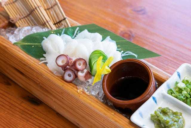 用芥末泥和芥末末调制的章鱼料理。