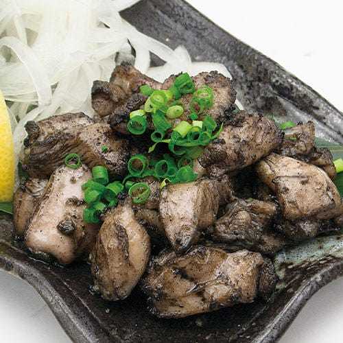 柔らか若鶏の炭火黒焼き 福岡柚子胡椒添え