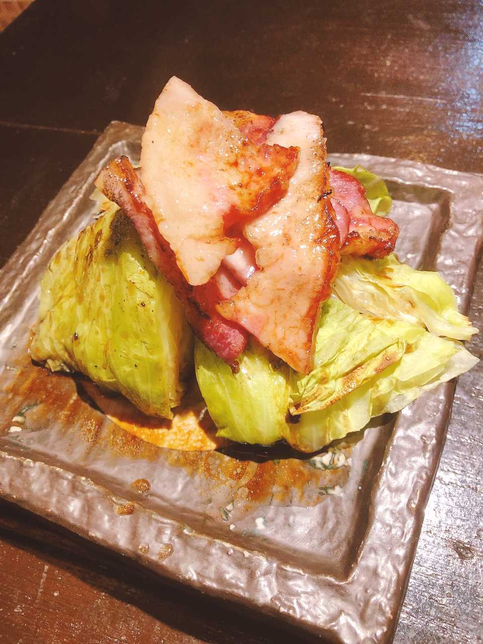 新鮮キャベツと厚切りベーコンの炭火焼き 特製醤油ダレで