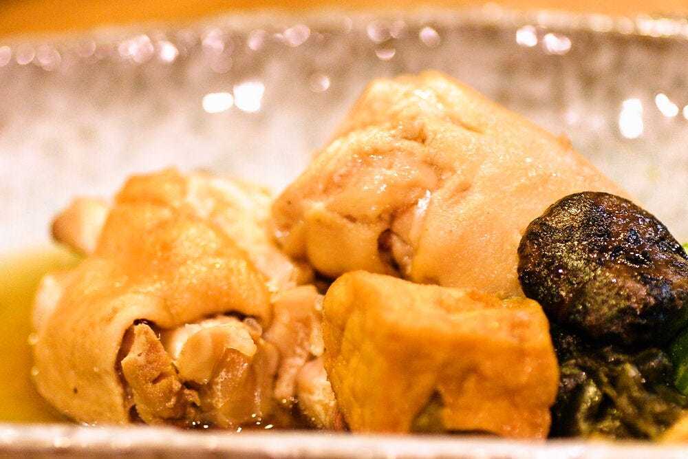 用盐调味猪蹄后烤制而成的料理。