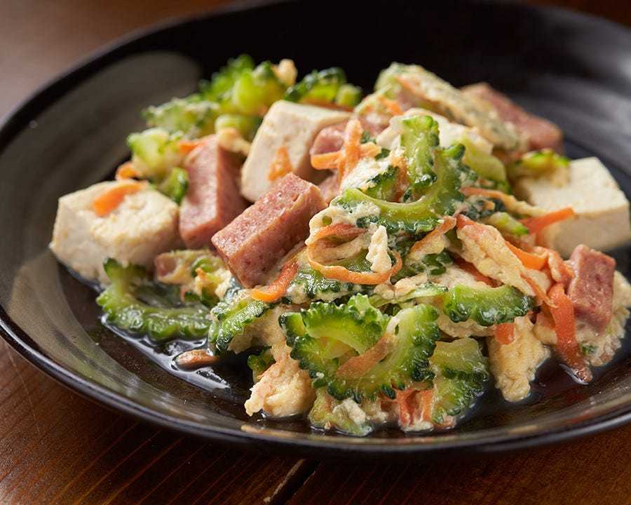 豆腐和青菜肉类一起炒出来的冲绳料理。