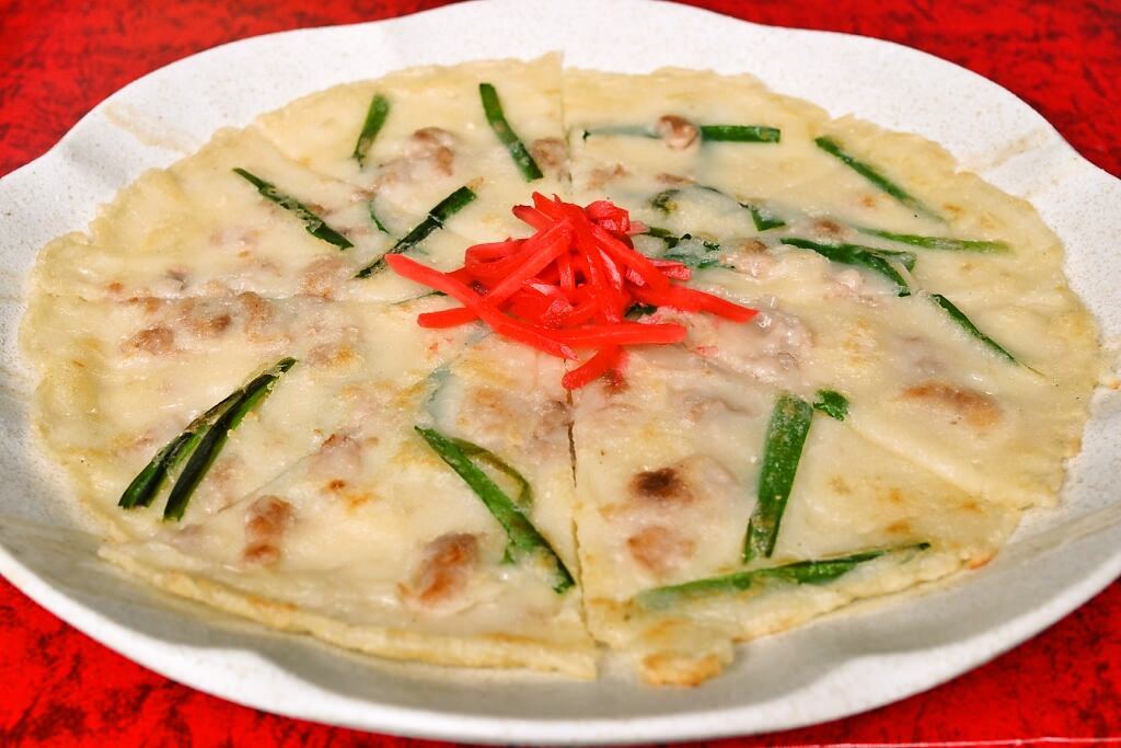 是一种把金枪鱼和韭菜之类的放在面糊中平烤的冲绳料理。