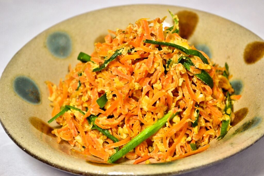 是“细条”的意思。切成丝的红萝卜和鸡蛋炒的在冲绳有名的家常菜。