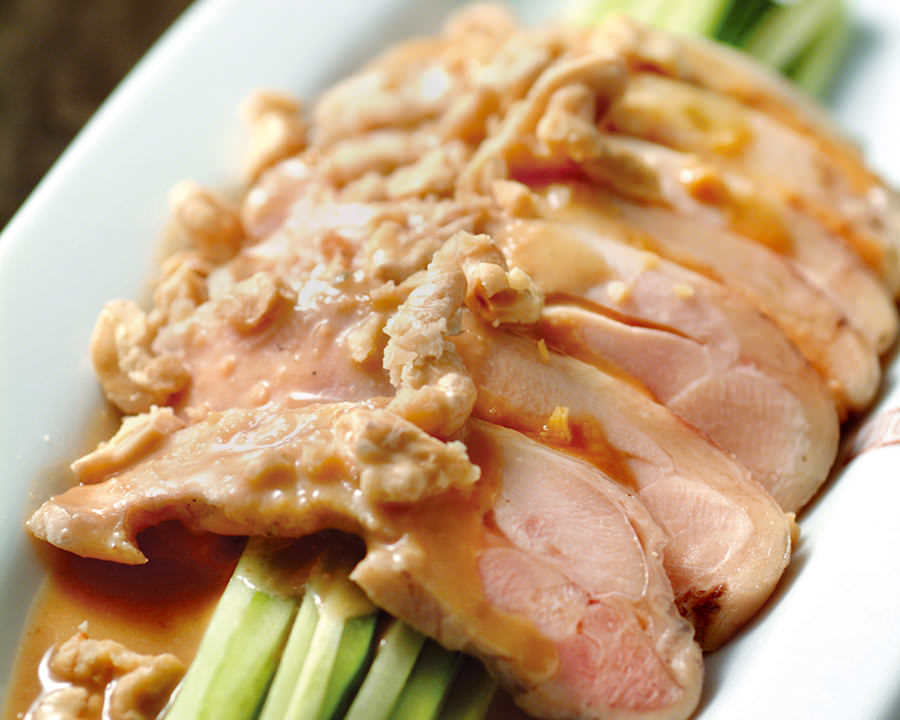 指将鸡肉表面揉搓过盐后,与葱姜及日本酒一起蒸煮的料理。