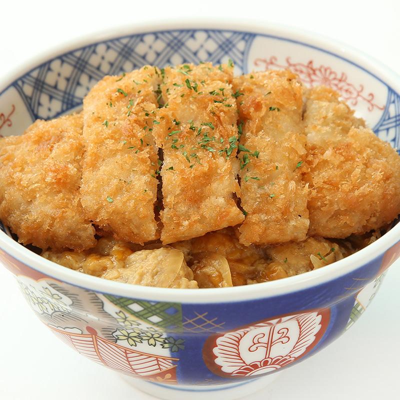 在米饭上盖上高汤煮猪排并淋上蛋液的料理。
