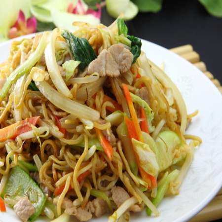 猪肉, 乌贼, 青梗菜, 炒面, 虾, 竹笋, 木耳