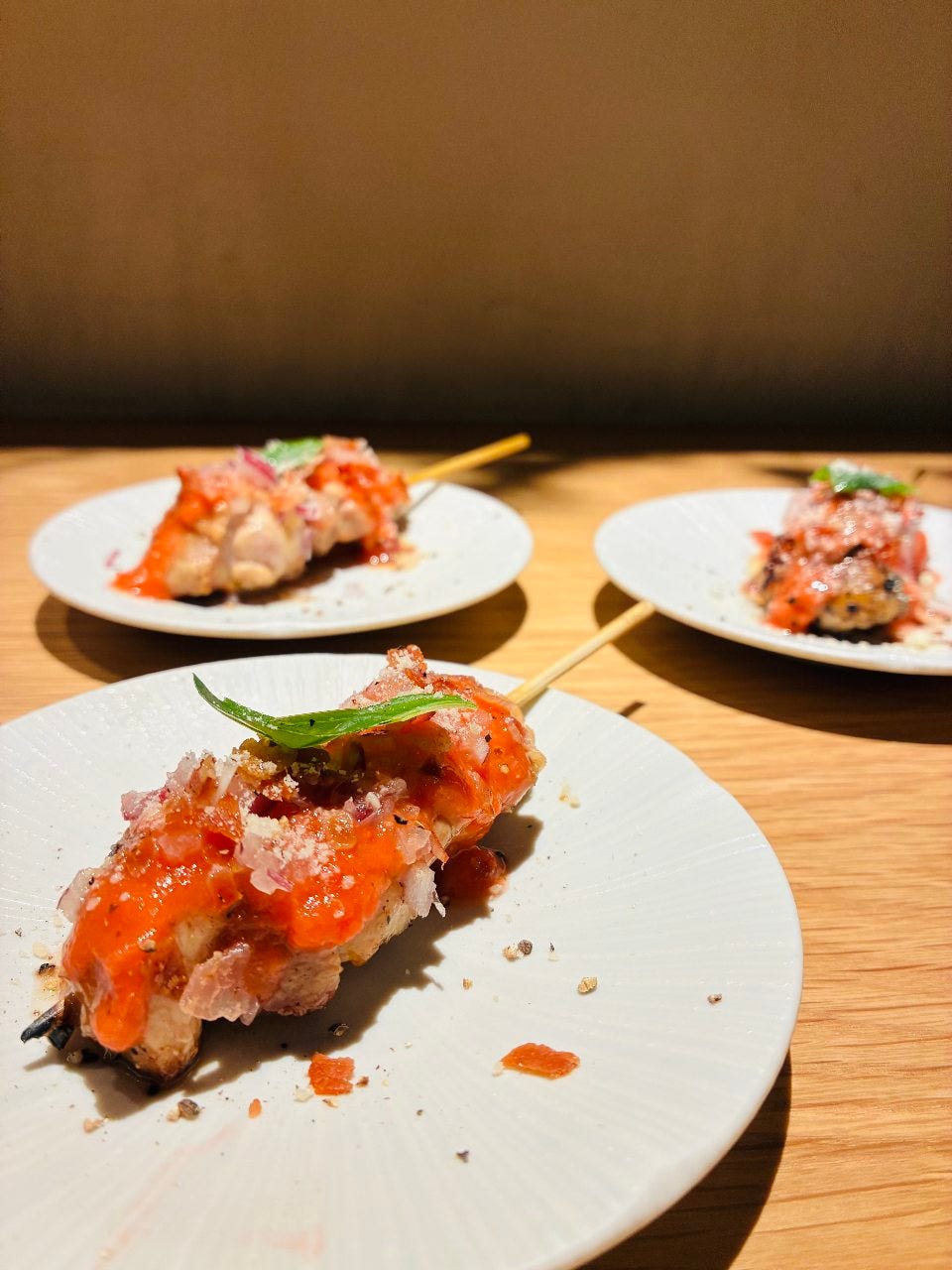 使用严选的鸡肉、很适合烧烤的木炭、从冲绳采购的盐、重复添上保持秘方的自豪酱汁等,除了讲究美味鸡肉串烤之外,还有从筑地直送的当季蔬菜及珍贵蔬菜、连汤头都用心的火锅,以及创作料理、种类丰富的盖饭、本店品酒师严选的日本酒、烧酒等,所有饮食都有本店的坚持作风。