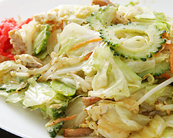 肉,海鲜类和蔬菜炒制后,将面混合再用酱汁调味的料理。