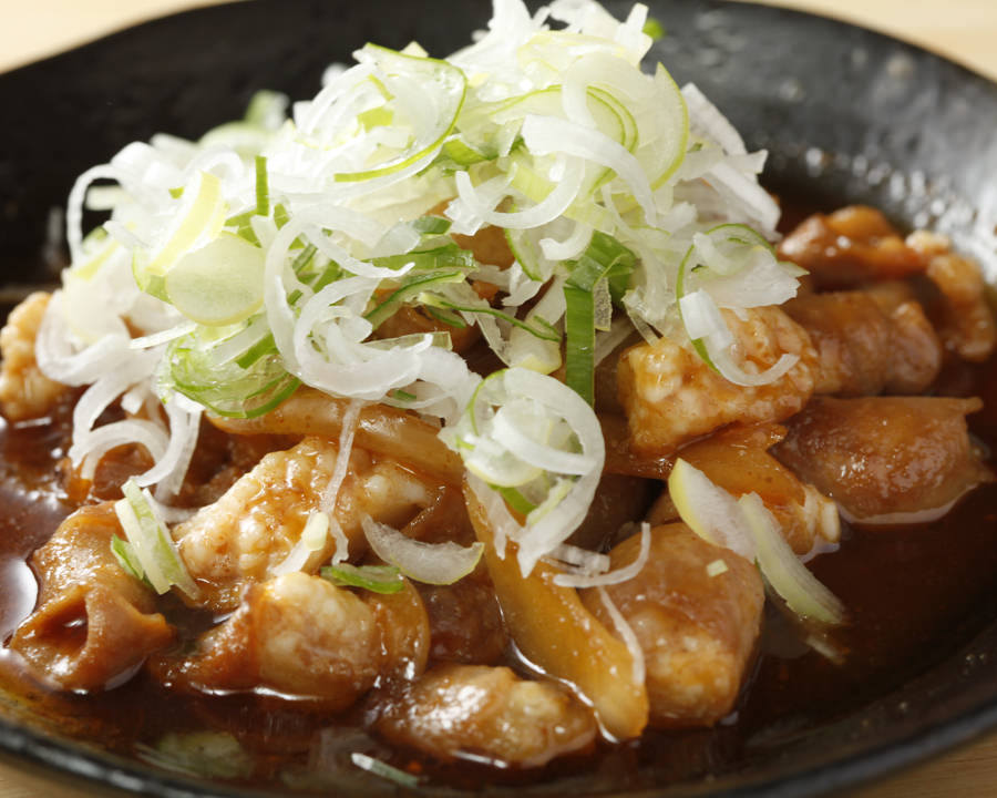 将一口大小的鸡皮穿成串,烤制的料理。