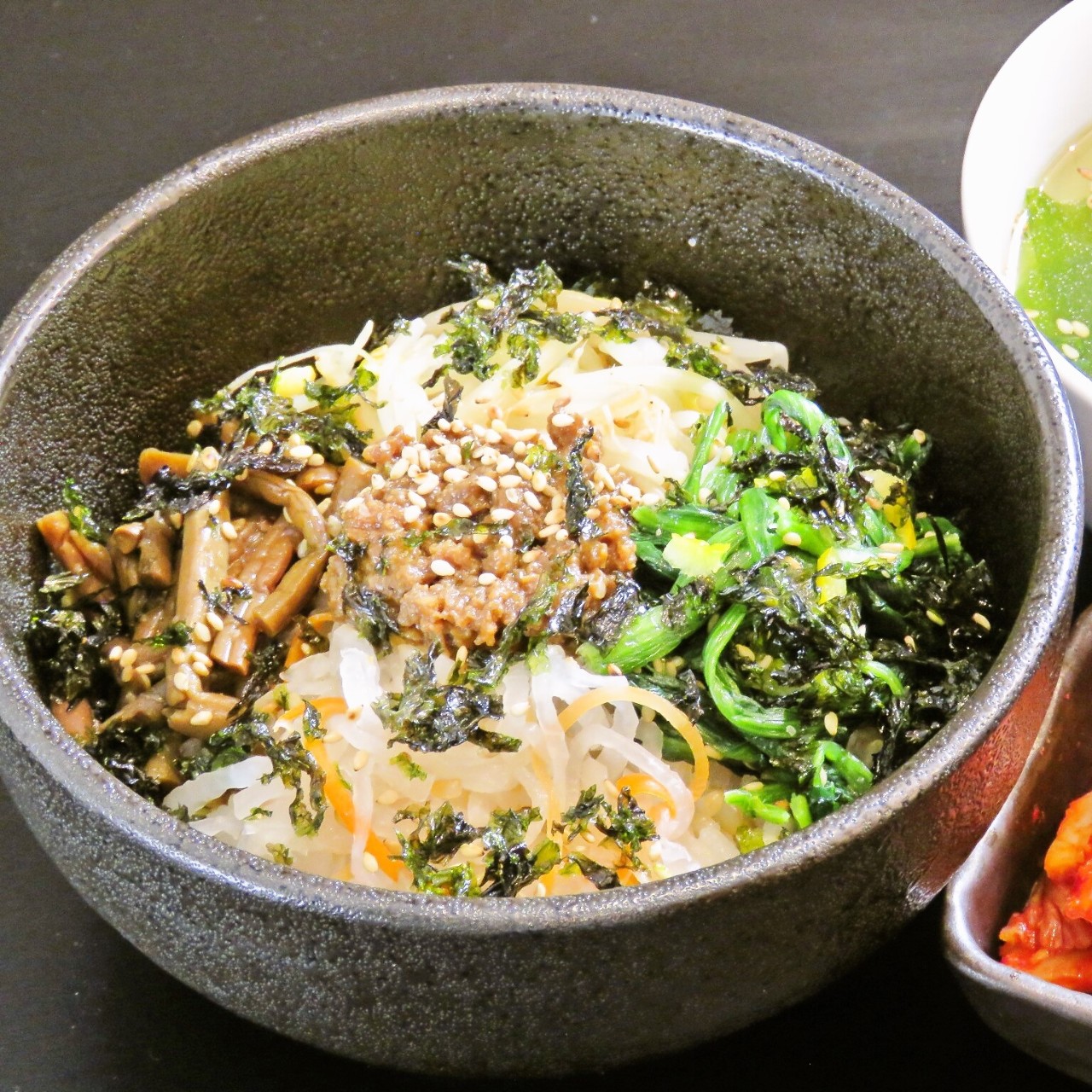 将牛肉和多种蔬菜煮制,再在用韩国红辣椒酱入味的汤里放入米饭的料理。