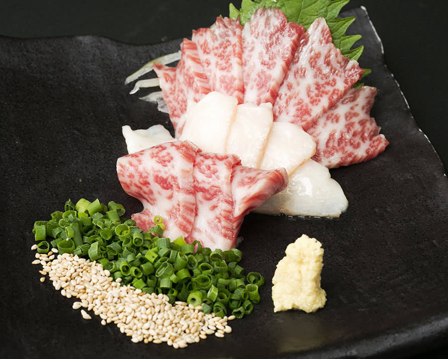 炙烤马肉的表面,蘸酱油或调味料等食用的料理。