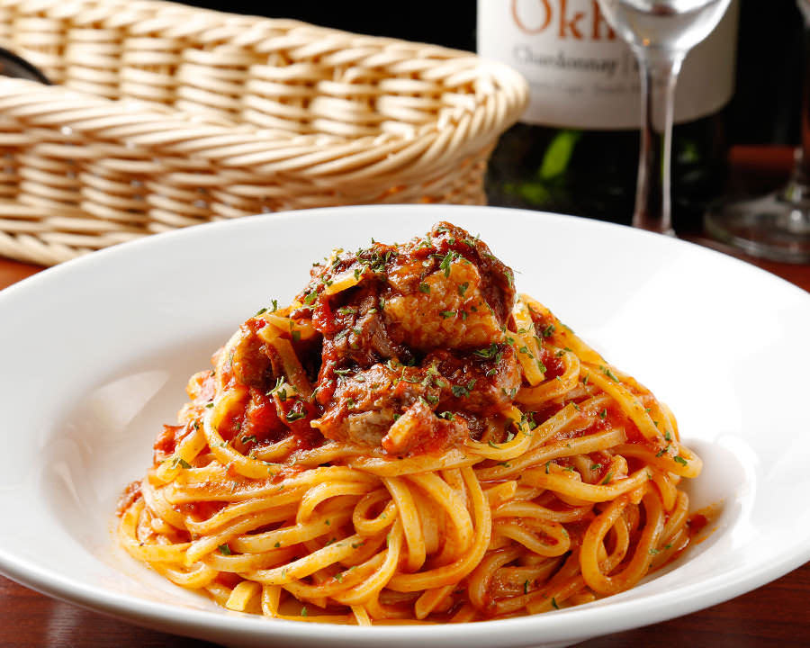 牛肉のやわらかトマト煮込みの生スパゲッティ