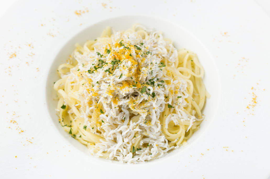 たっぷりシラスとカラスミのアーリオオーリオ リングイネ