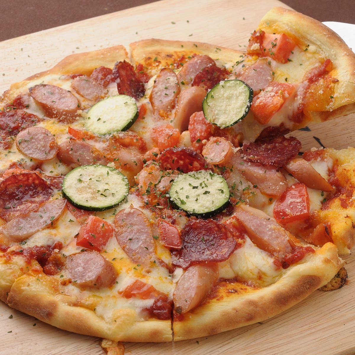 西葫芦, 番茄, 培根, 小麦粉, 奶酪, 虾, 蘑菇类