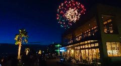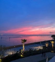 海に夕陽沈むレストラン 舵輪