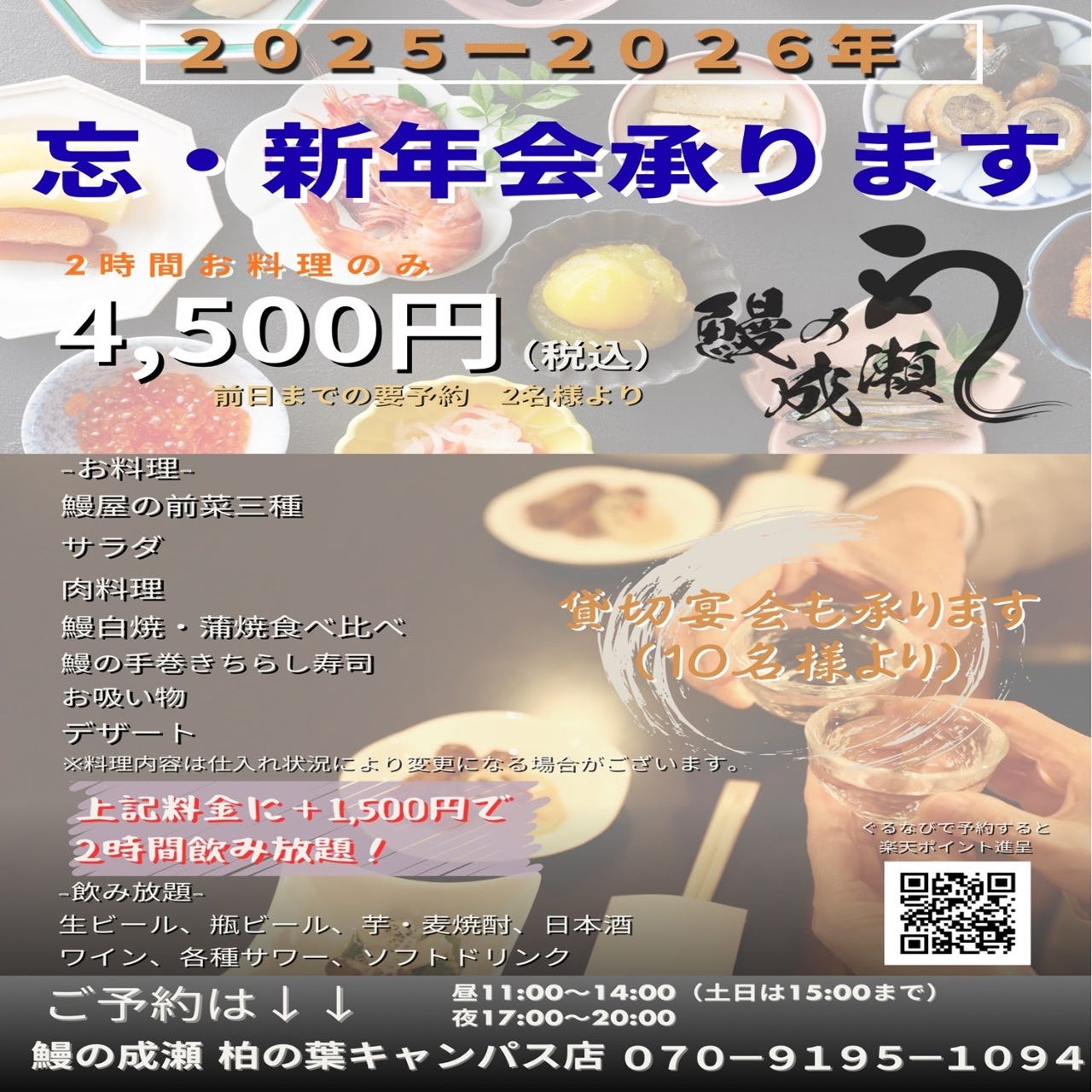 ●仅预约座位 预约取消,适用于下述注意事项。 套餐预约 当天取消(无联络):100% 关于订座预约(每位) 当天取消(无联络):2000日元 |