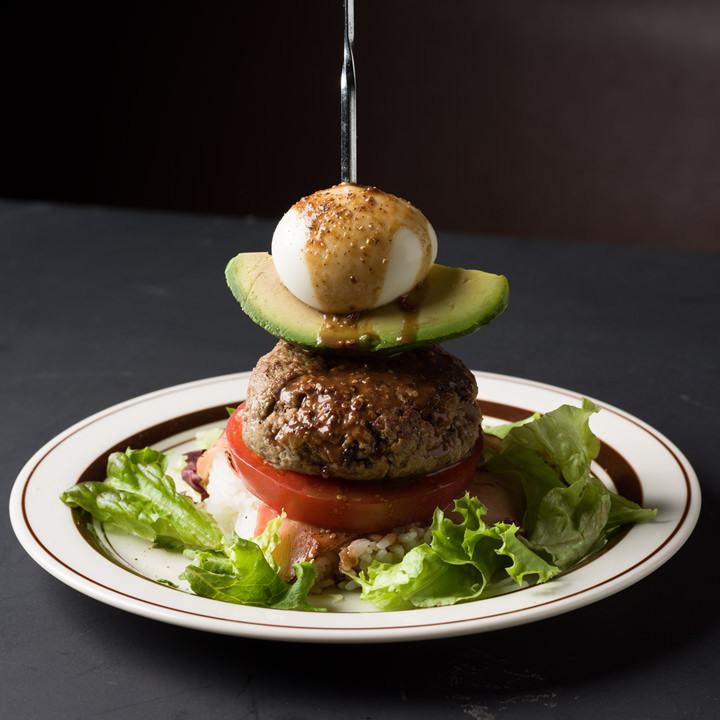 ジューシーハンバーグとアボカドのロコモコタワー