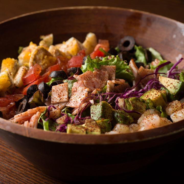 鸡小胸肉, 牛油果, 番茄, 莴苣, 鸡蛋, 培根, 蓝奶酪