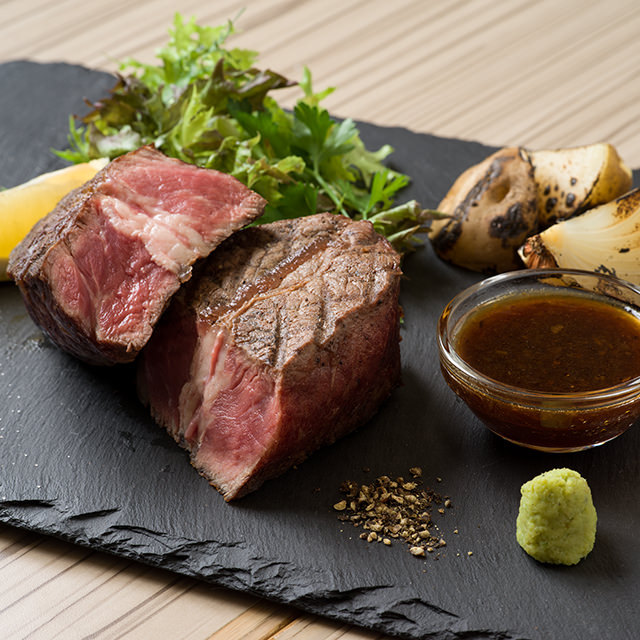 将被称作嫩肩肉从牛的肩部到脖子部位的肉烤制而成的料理。