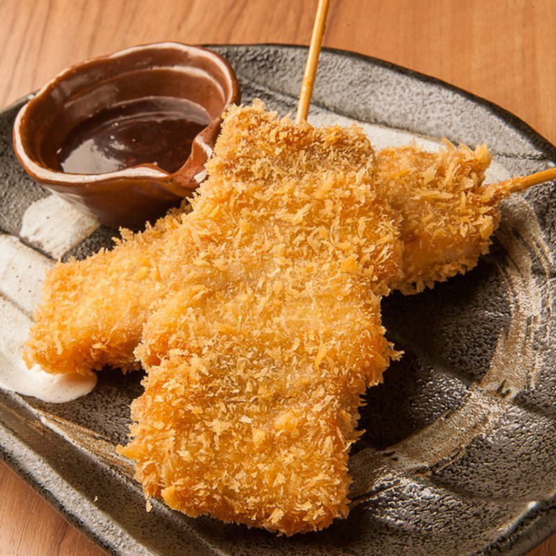 将一口大小的鸡肉穿成串,烤制的料理。