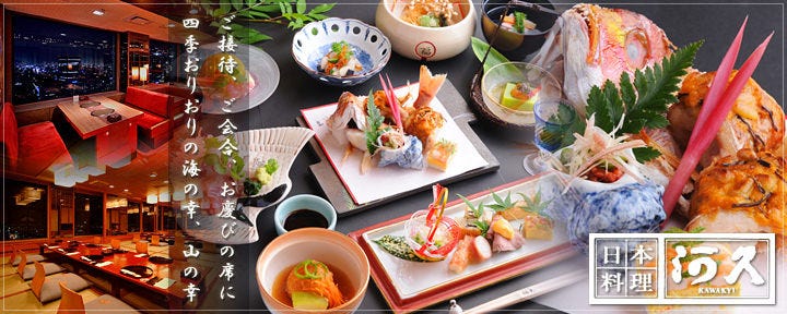 在料理方面,备有每月替换的怀石料理、火锅、夏季的海鳗、冬季的河豚及螃蟹料理等,也提供丰富的季节食材。