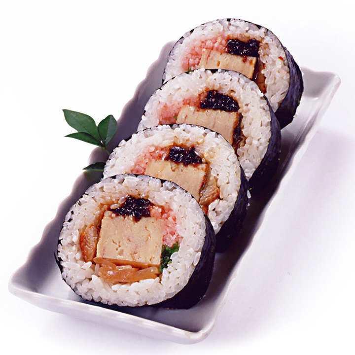 海苔, 醋饭, 金枪鱼, 虾, 鲑鱼, 章鱼, 中华马珂蛤, 鲑鱼卵, 甘蓝菜, 莴苣