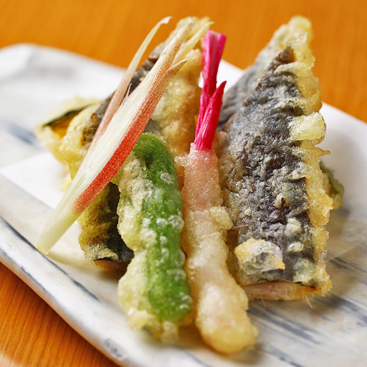 小麦粉, 虾, 南瓜, 茄子, 香菇, 狮子辣椒, 白肉鱼