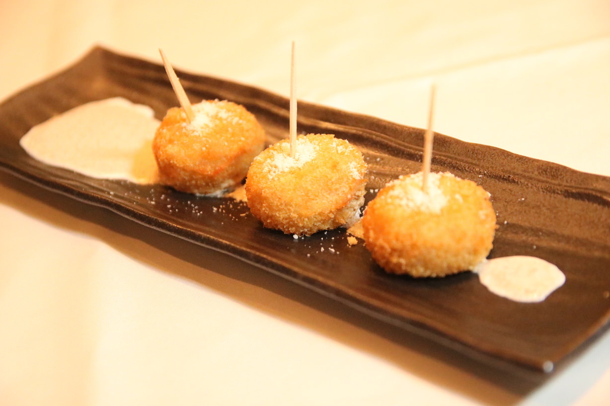 将米饭与碎肉和蔬菜等混合,裹上面包屑,用油炸制而成的料理。