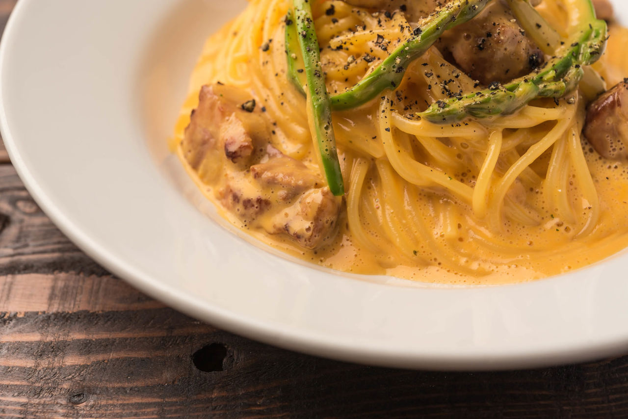 鸡蛋, 培根, 意大利面, 鲜奶油, 奶酪, 牛奶