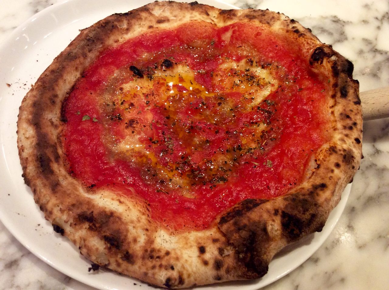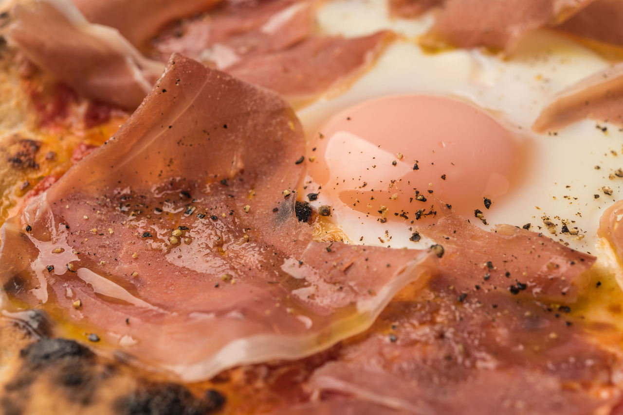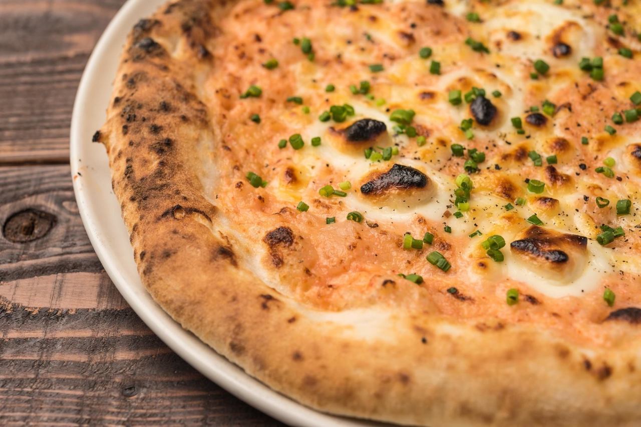 将披萨涂上带有辣椒的番茄酱,再放上数种食材烤制的料理。