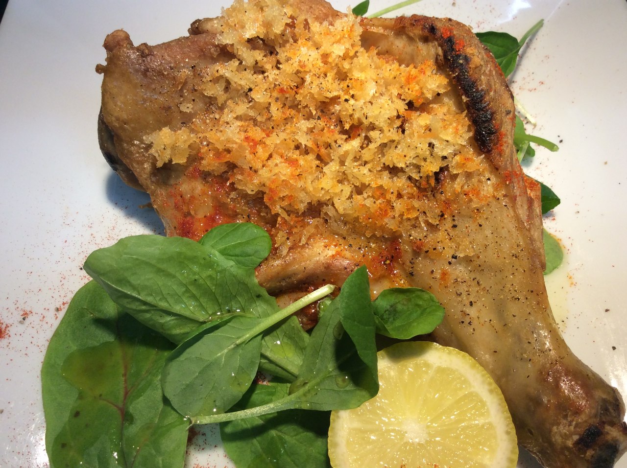 岡山産骨付き鶏もも肉のロースト 悪魔風