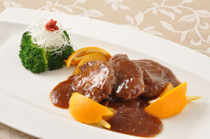 在搅拌好的鸡蛋里放入蟹肉和其他材料烤制后再浇汁的料理。