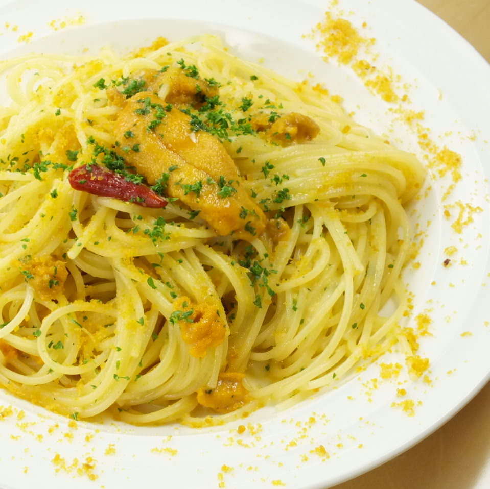生うにとからすみのペペロンチーノスパゲッティ