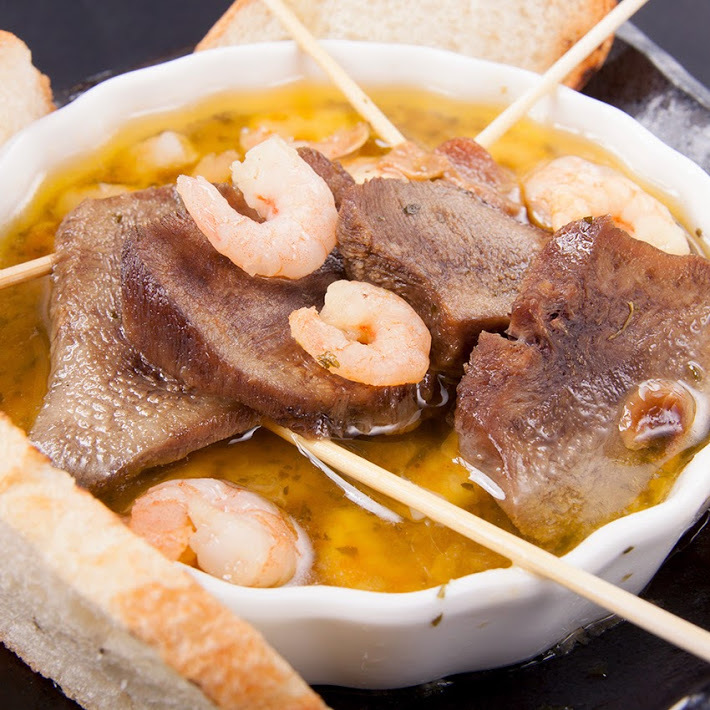 牛タンと小エビのアヒージョ