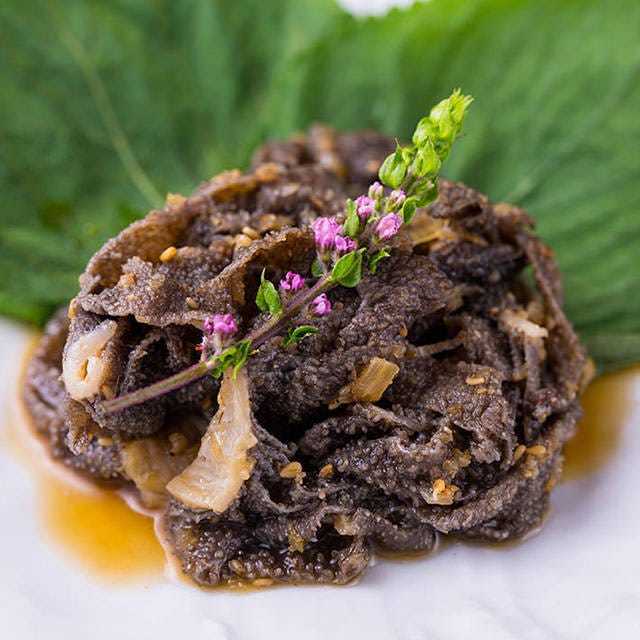 葱, 蛋黄, 松子, 黑毛和牛